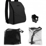 - Rucsac, suport pentru băuturi, plasă anti-insecte, husă de ploaie