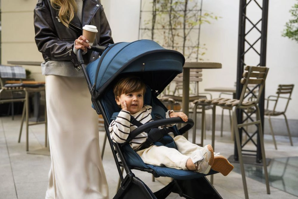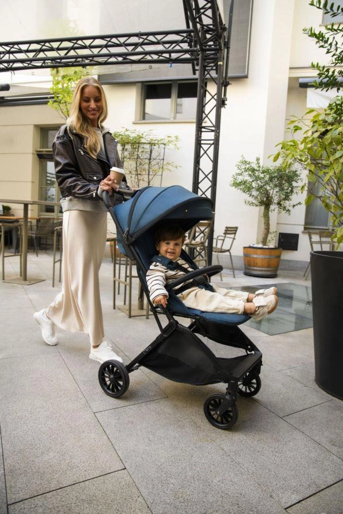 MoMi Andrea este un partener urban de încredere, conceput pentru confortul părintelui și al copilului. Datorită plierii automate printr-o singură apăsare, îl poți manevra chiar și cu copilul în brațe. Copertina mare cu fereastră și fereastra suplimentară de ventilație cu plasă în poziția culcat asigură supraveghere și o circulație plăcută a aerului în zilele fierbinți.