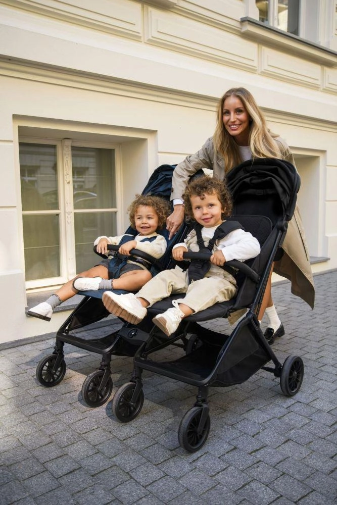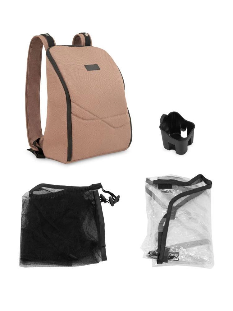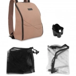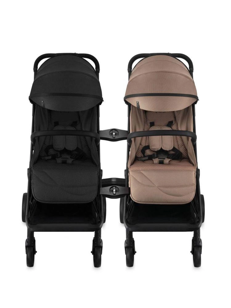 Pachetul include rucsac pentru cărucior, suport pentru băuturi, plasă anti-insecte și husă de ploaie. Un set opțional de adaptoare permite conectarea a două cărucioare într-o soluție practică pentru frați sau gemeni.