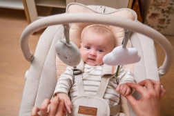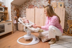 Alegeți între legănarea dintr-o parte în alta și mișcarea rotativă delicată. Cele cinci trepte de viteză se ajustează ușor în funcție de starea și nevoile bebelușului.