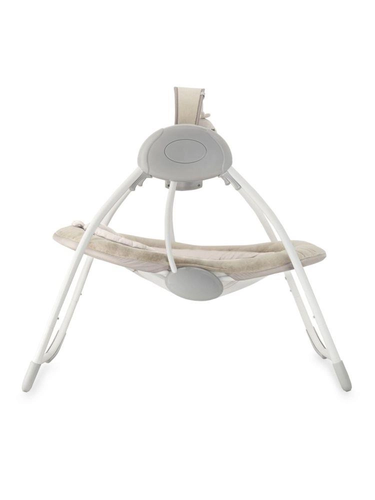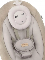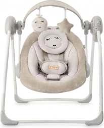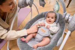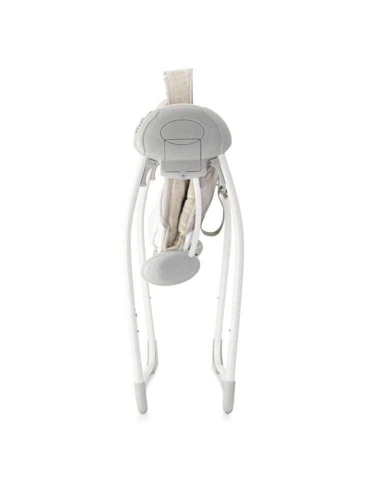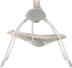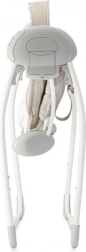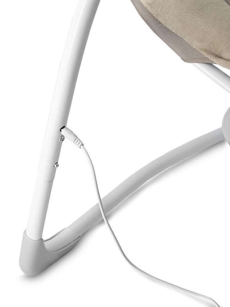 Scaunul capitonat, cu perniță de sprijin și centură în 5 puncte, oferă confort și menține copilul în poziția corectă în timpul legănării.