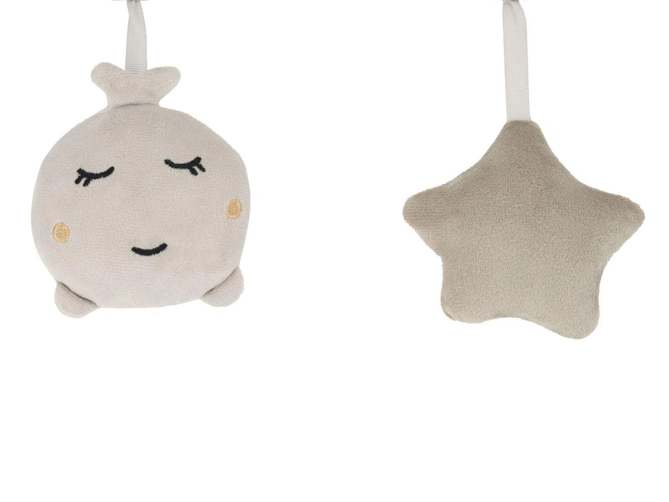 Două jucării suspendate stimulează vederea și prinderea, iar cele 6 melodii creează o atmosferă plăcută pentru joacă și relaxare.