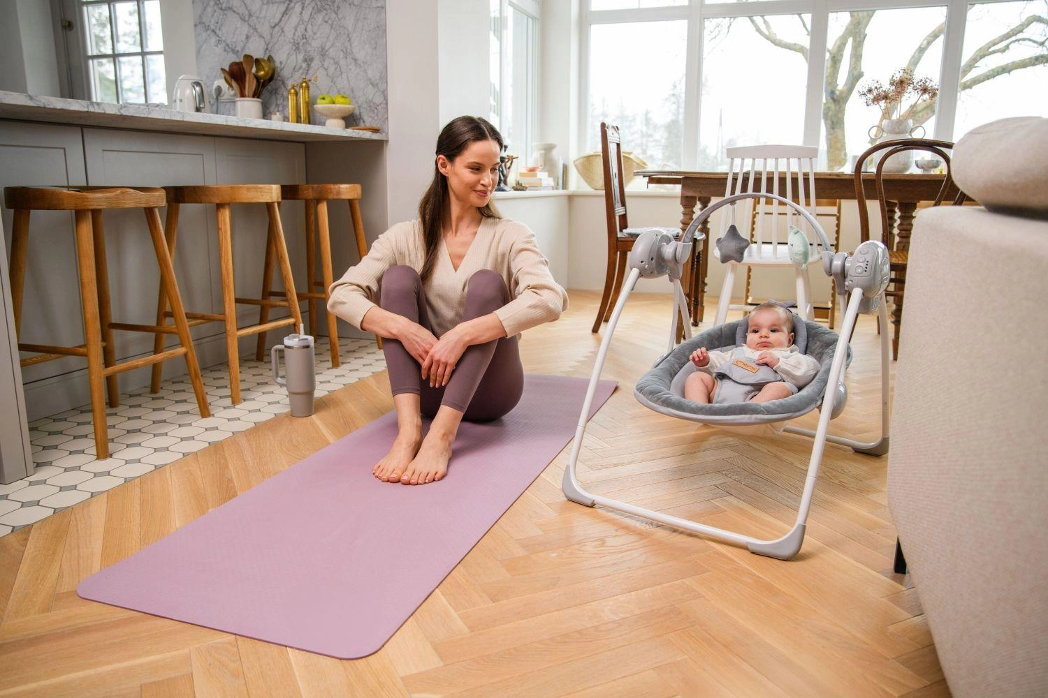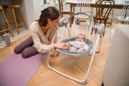 Capitonajul moale, suportul pentru cap și centurile în 5 puncte cu chingă largă la picioare asigură confort și siguranță la fiecare legănare.