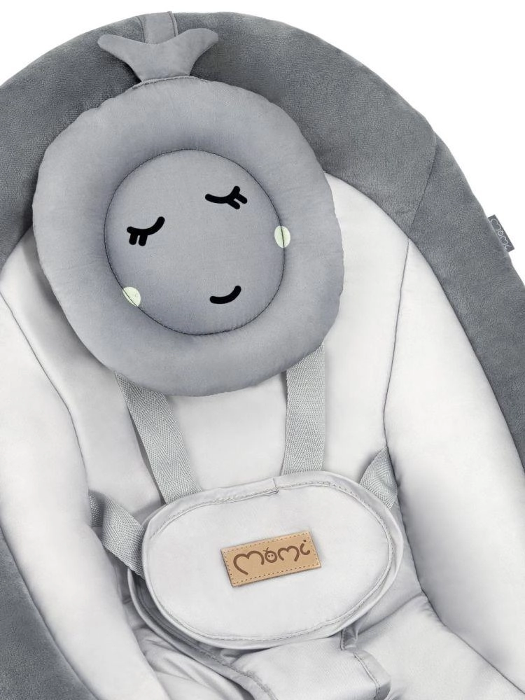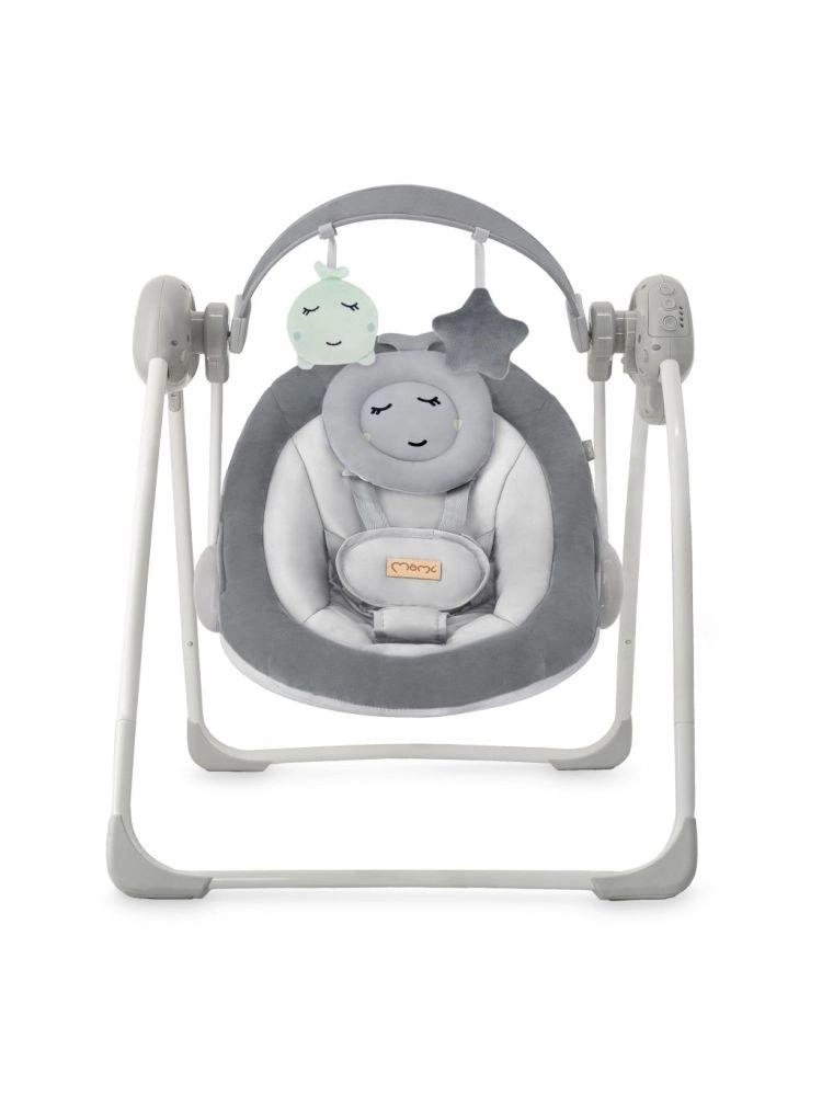 Leagănul electric MOMI Liss în eleganta culoare gri liniștește și distrează bebelușul datorită celor 5 viteze de legănare, temporizatorului și celor 6 melodii. Are o construcție stabilă, pliabilă, șezut moale cu pernuță și centuri în 5 puncte pentru utilizare sigură și confortabilă acasă și în călătorii.