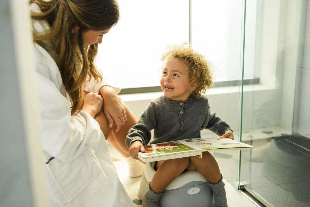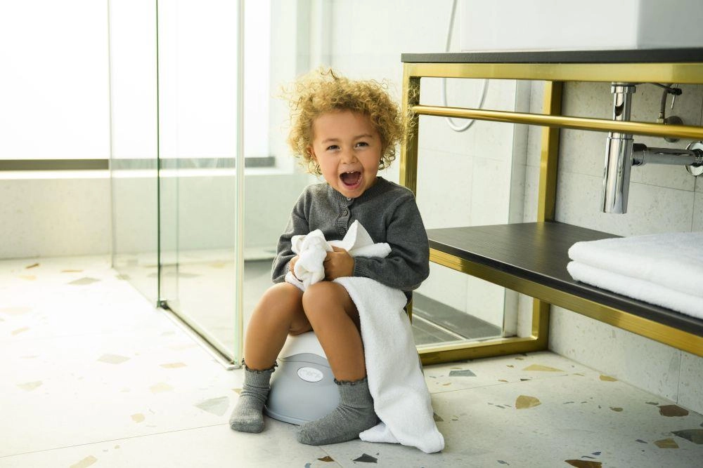 Baza lată și solidă, cu margine antiderapantă, menține olița pe loc chiar și pe suprafețe netede.