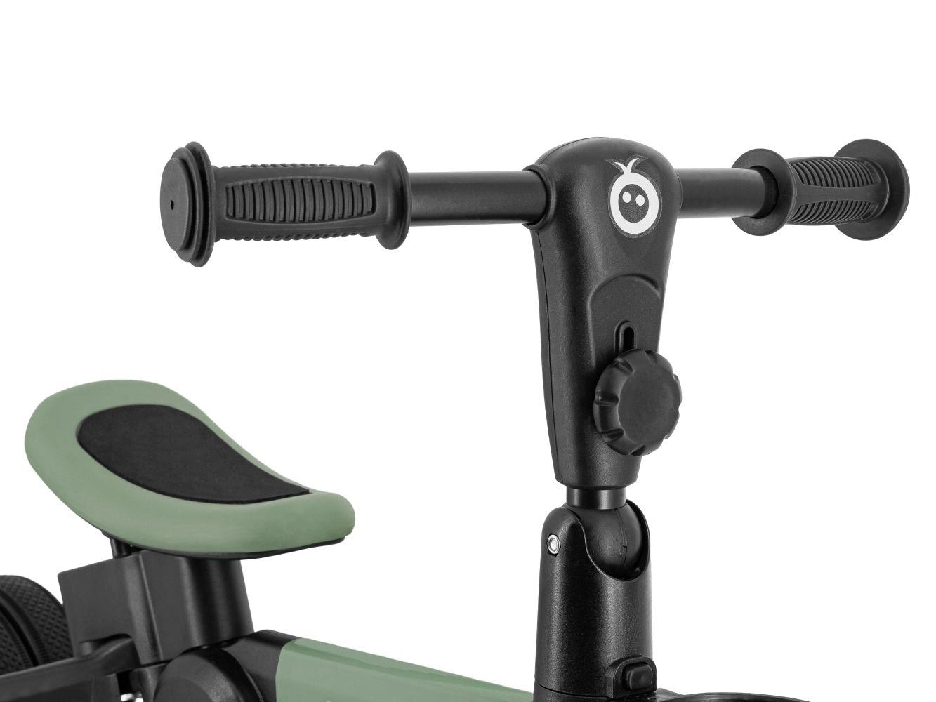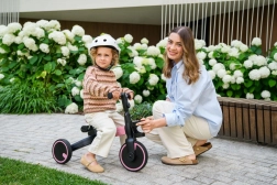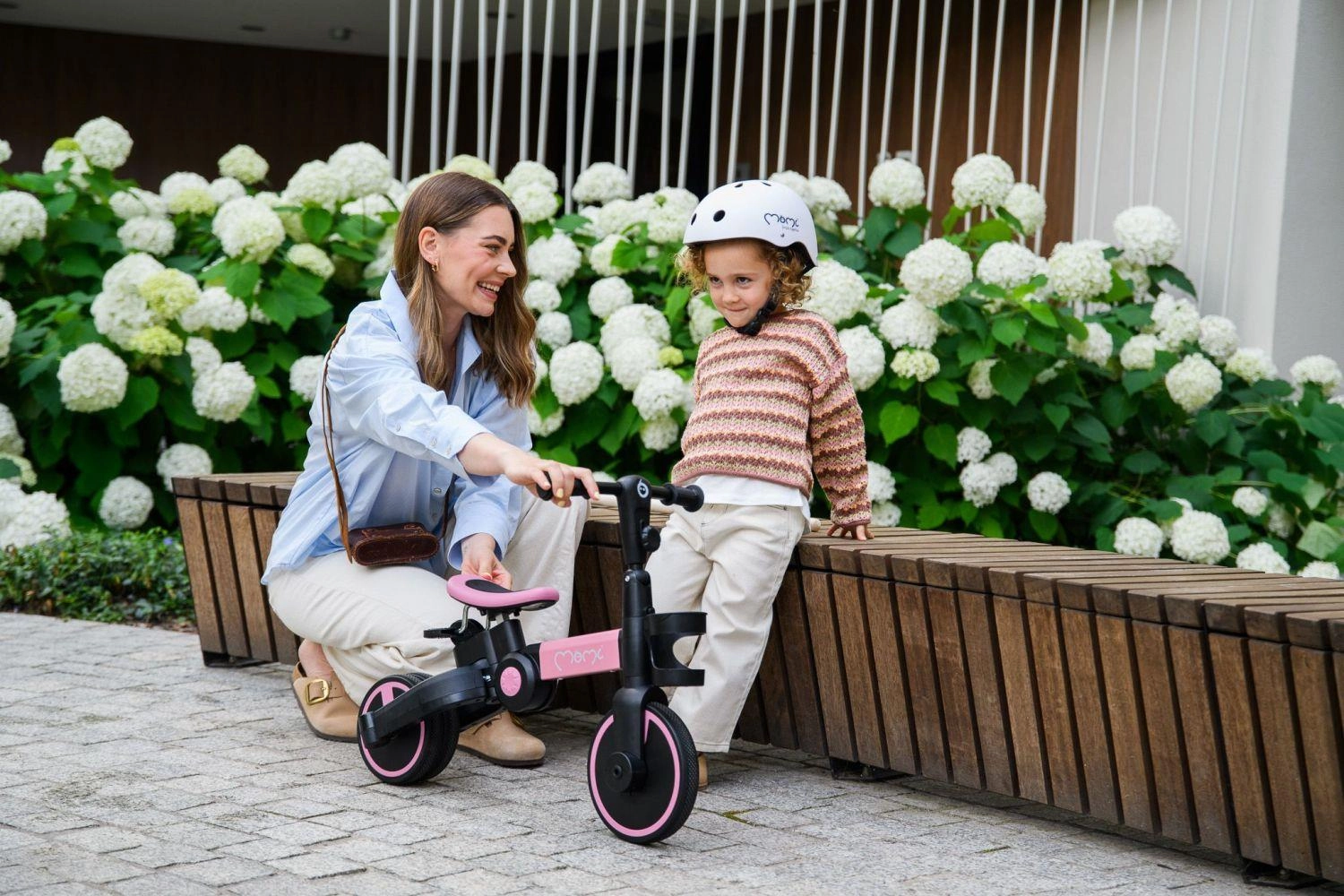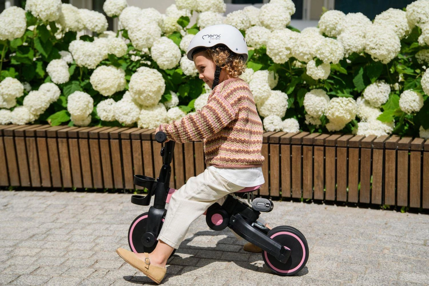 MoMi FILO 3‑în‑1 combină împingătorul, tricicleta cu pedale și bicicleta de echilibru într‑un singur produs. Transformarea se face în câteva clipe și fără unelte, astfel încât adaptați ușor mersul la vârsta și abilitățile copilului. Datorită ghidonului și cadrului pliabile economisiți spațiu și luați bicicleta comod oriunde.