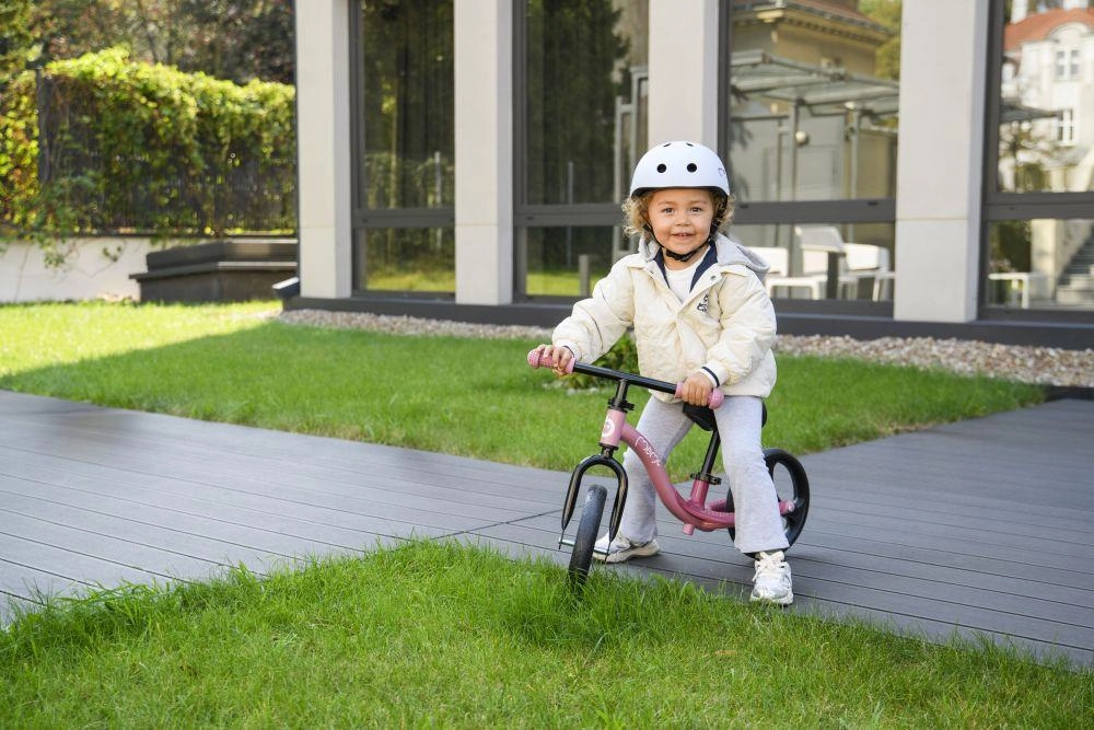 Confortul este asigurat de roțile din cauciuc termoplastic (TPR), care absorb mai bine vibrațiile și oferă aderență bună. Înălțimea șeii și a ghidonului se reglează rapid și fără unelte, astfel încât bicicleta crește ușor odată cu copilul. Absența blocării direcției sporește agilitatea și, în caz de împiedicare, permite ghidonului să se plieze, ceea ce crește siguranța.