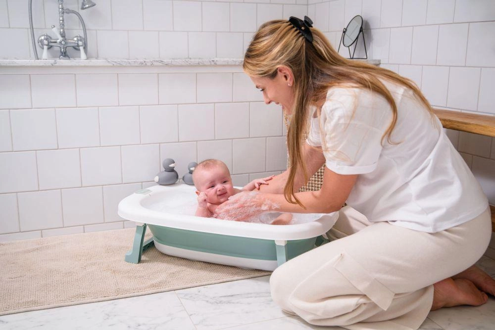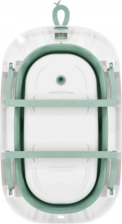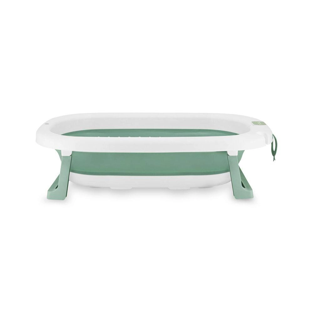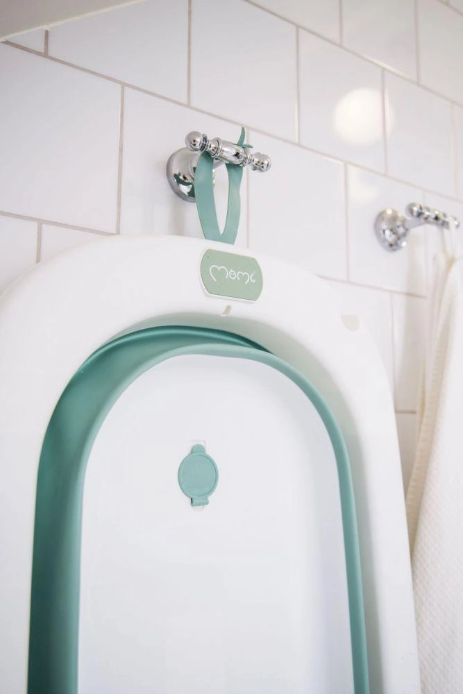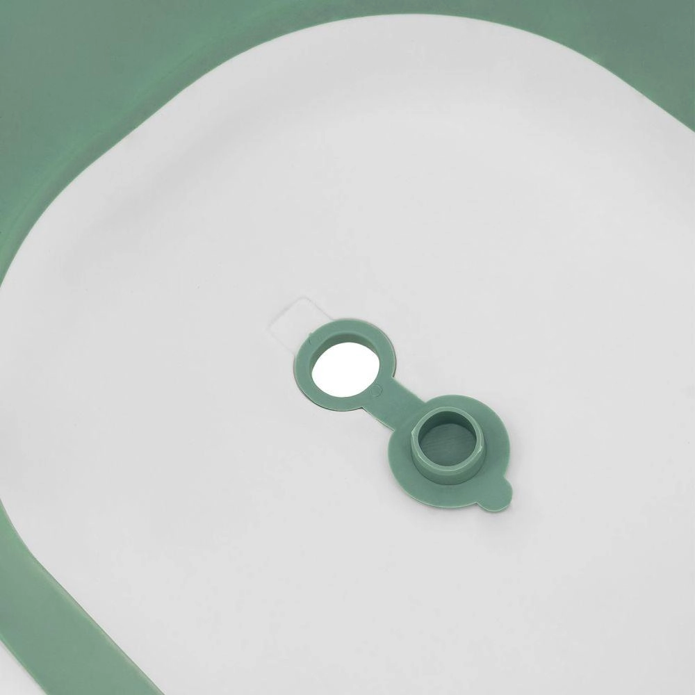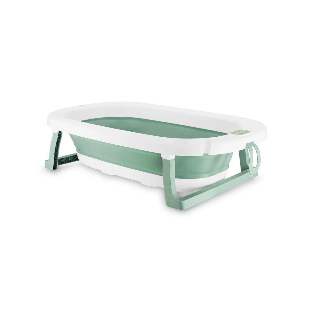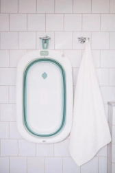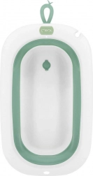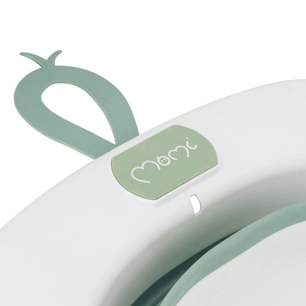 Cădița pliabilă practică pentru bebeluși MoMi NATA, în culoare verde, oferă baie stabilă și sigură încă de la naștere. Datorită pliării rapide economisește spațiu, are picioare antiderapante, dop de scurgere etanș și agățătoare pentru suspendare – ideală pentru băi mici.