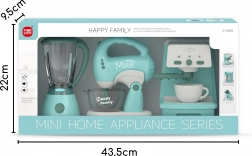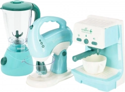 Setul AGD 3-în-1, stilat și funcțional, pentru micii bucătari, oferă tot ce este necesar pentru o cafenea de acasă sau pentru experimente culinare. Copiii se vor bucura de un joc realist datorită turnării apei din cafetieră, telurilor rotative ale mixerului și lamei rotative a blenderului. Lumina și sunetul integrate amplifică experiența și apropie jocul de gătitul real.