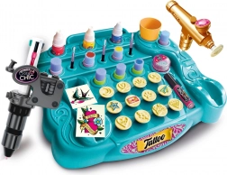 Crează tatuaje temporare exact așa cum îți imaginezi. Cu studioul de tatuaje Crazy Chic, copiii pot desena motive de mână, folosi șabloane autoadezive sau imprima modele cu ajutorul ștampilelor. În pachet găsești totul într-un singur loc – culori, sclipici, instrumente și accesorii pentru aplicare ușoară.