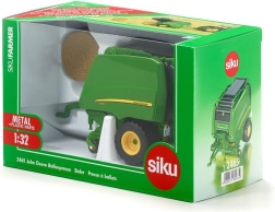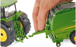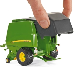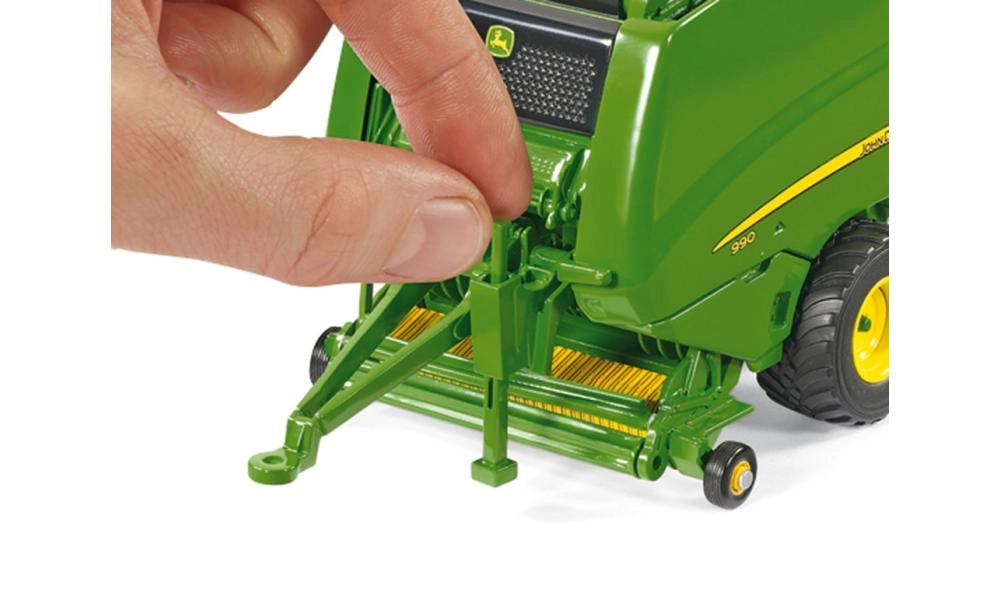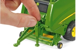 Datorită capace-lor mobile, ușilor din spate, colectorului și piciorului de sprijin puteți simula cu ușurință munca pe câmp. Modelul este pe deplin compatibil cu tractoarele Siku Farmer 1:32, iar în pachet găsiți și un balot rotund pentru a finaliza acțiunea de balotare.