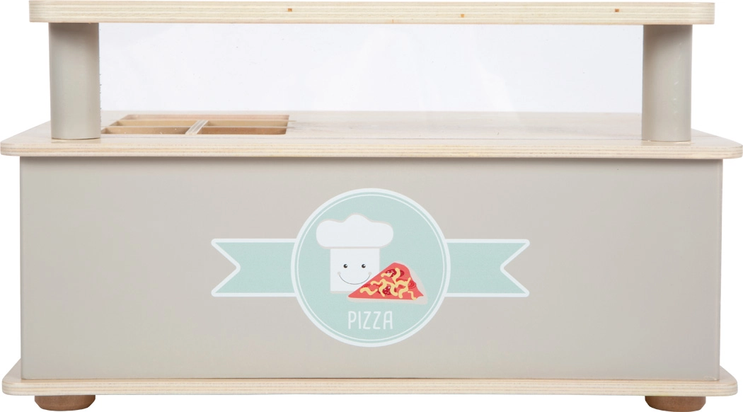 Această pizzerie din lemn de înaltă calitate de la small foot este un plus grozav pentru orice bucătărie de jucărie. Cuptorul cu buton rotativ, care face clic la învârtire, servește atât ca și cămară, cât și ca tejghea de vânzare. Copiii pot coace, tăia și servi pizza pe o lopată din lemn, iar datorită accesoriilor bogate se pot juca de-a bucătarul și de-a vânzătorul.