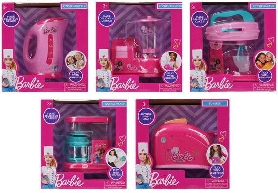 Poți alege dintre diferite variante de electrocasnice, precum espressor/cafetieră, prăjitor de pâine, blender sau fierbător electric. Fiecare set este conceput pentru a fi ușor de folosit de către copii și, în același timp, atrăgător vizual – exact în stilul iconic BARBIE.
