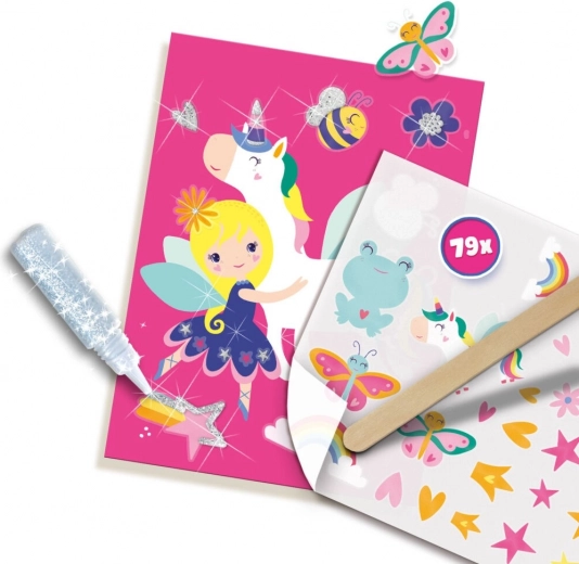 Acest set creativ este perfect atât pentru începători, cât și pentru creatori experimentați. Așază motivul pe hârtie, freacă-l cu un bețișor sau o spatulă și e gata. Pentru evidențierea detaliilor, adaugă sclipici și vei obține un efect fermecător.