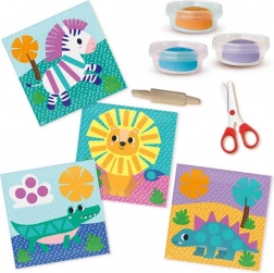 Acest set creativ oferă o cale ludică de dezvoltare a abilităților. Copiii întind plastilina cu un rulou, decupează diverse forme și modele, apoi le lipesc sau le așază pe cartonașele model incluse. Datorită foarfecelor sigure și cardurilor laminate reutilizabile, activitatea este ușoară, curată și potrivită pentru jocuri repetate.