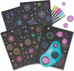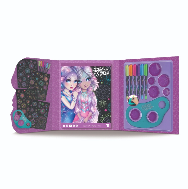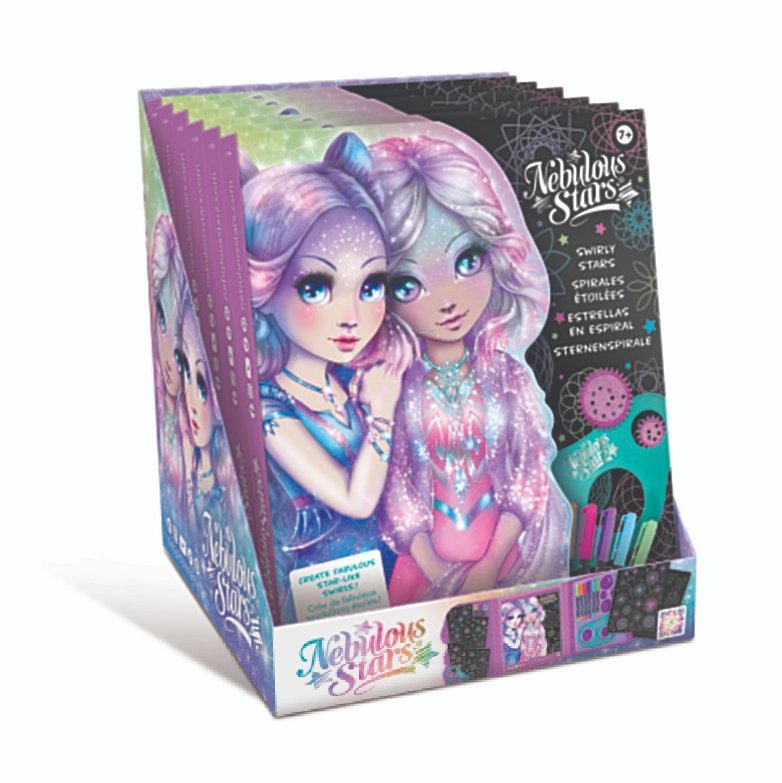 Intră în lumea stelară NEBULOUS STARS și dă frâu liber imaginației cu setul original pentru pictarea spiralelor. Paginile negre evidențiază superb culorile neon, iar șablonul cu 7 rotițe îți permite să creezi cu ușurință modele spiralate perfect regulate sau jucăuș combinate.