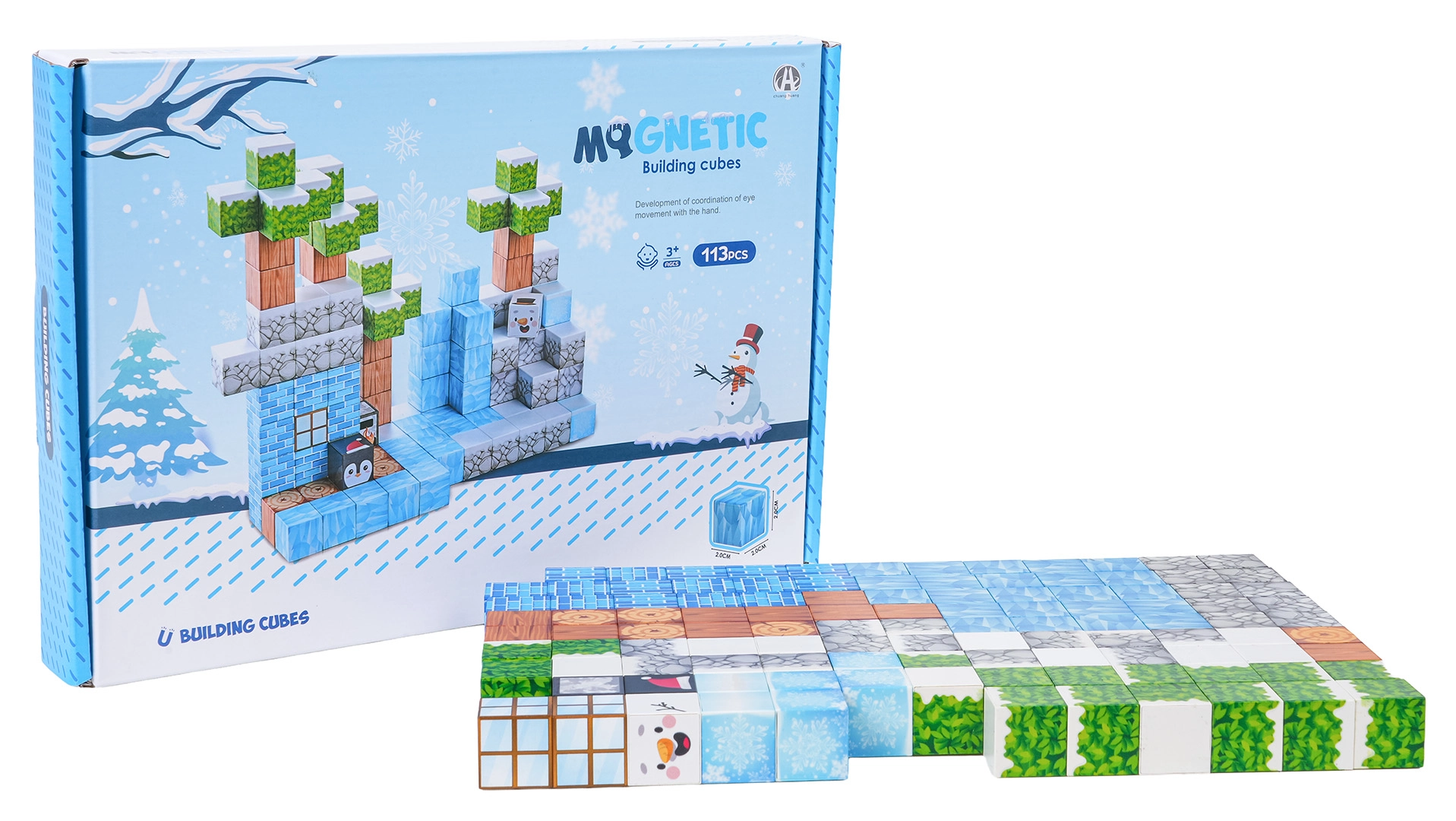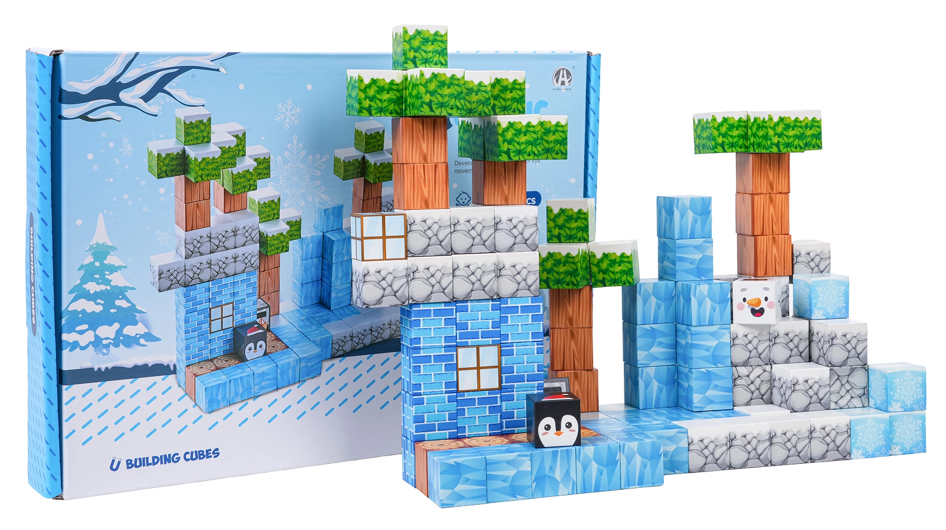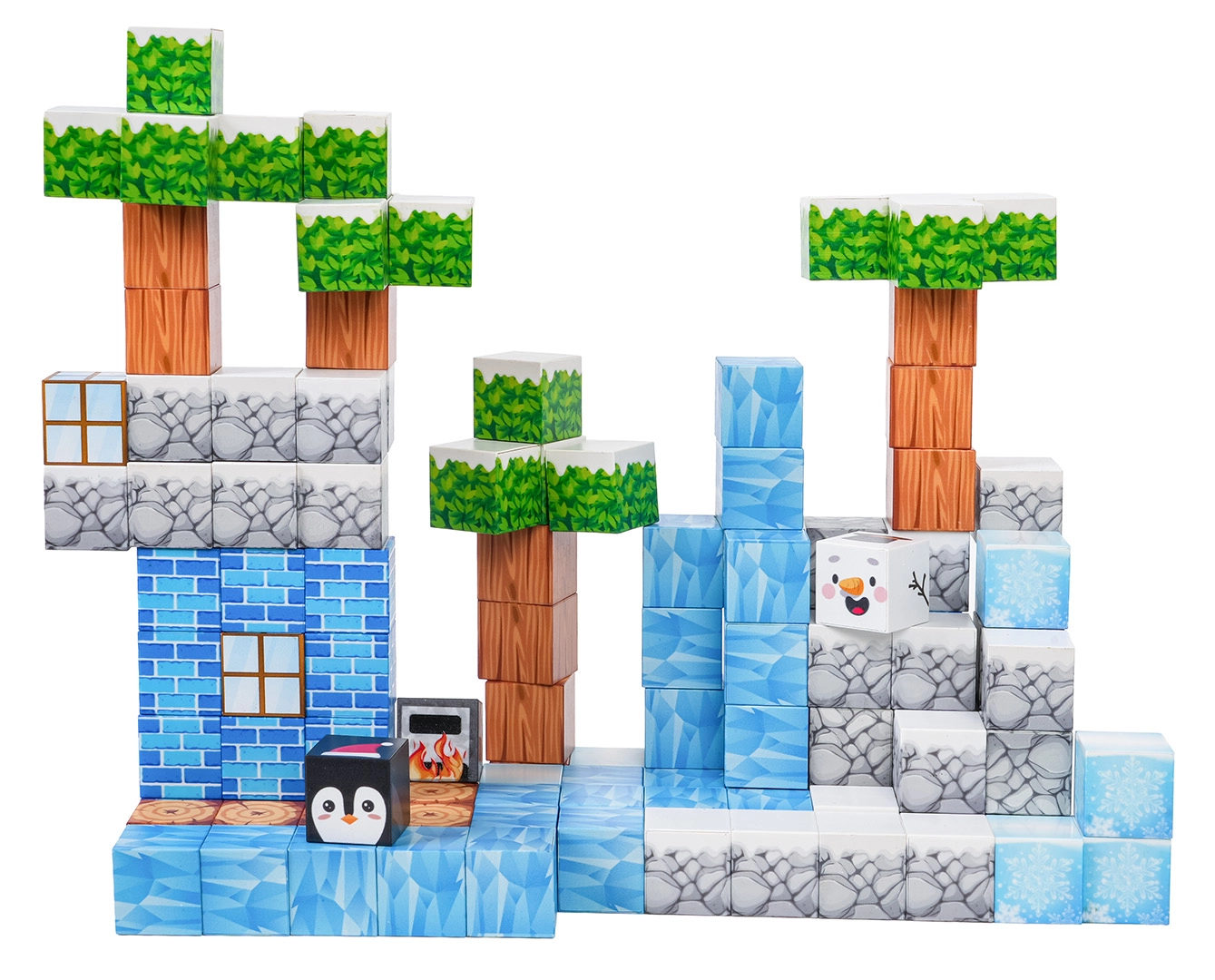 - 113 cărămizi 3D colorate cu imprimeuri tematice de peisaj de iarnă