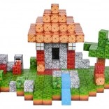 Numărul mare de cuburi cu imprimeuri variate permite compunerea unor scene diverse – de la căsuță cu grădină până la pârâiaș și peisaj pixelat.