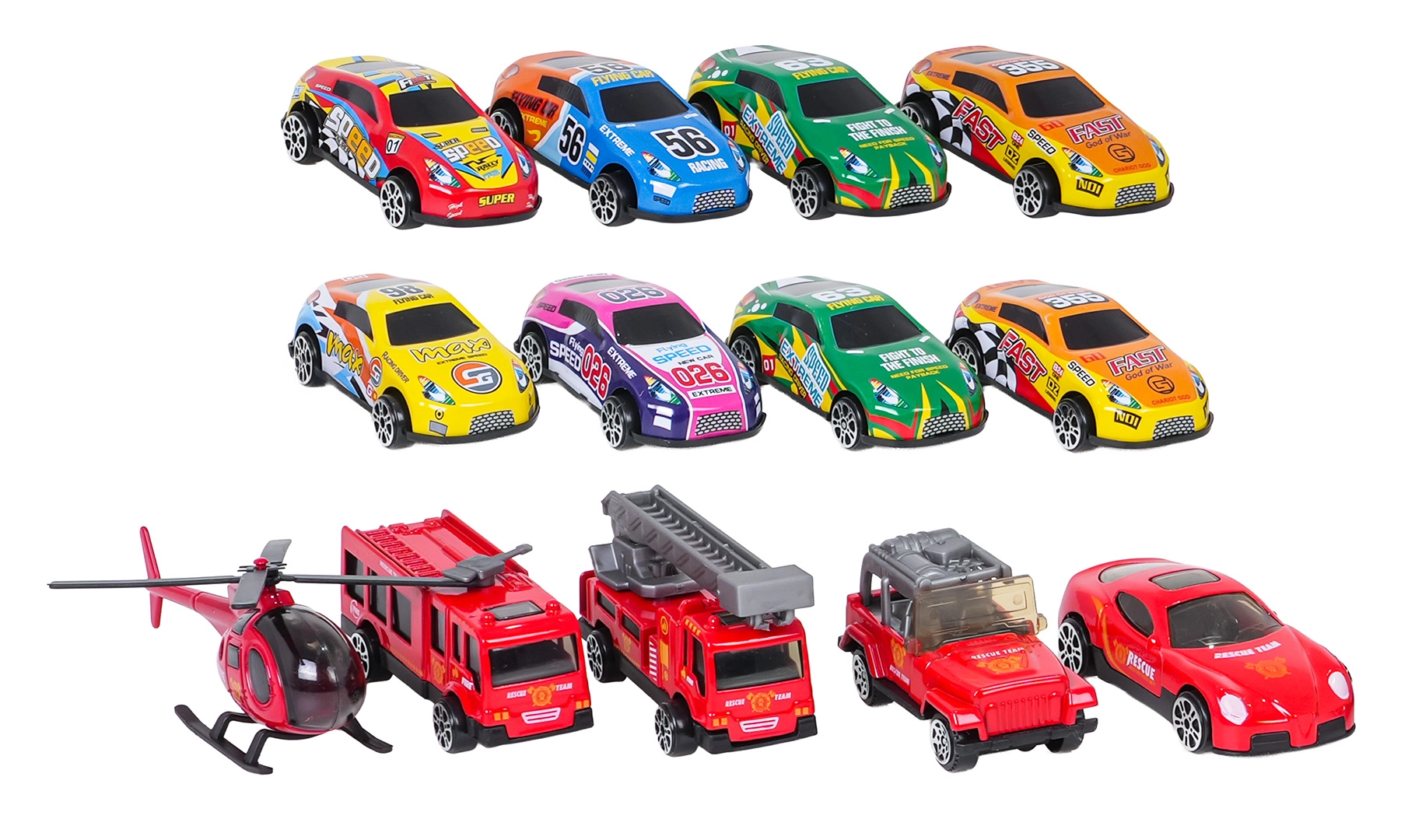 - Dotare bogată: 12 mașinuțe + elicopter, semnalizare și autocolante