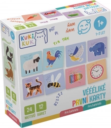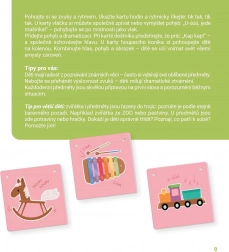 În intervalul 12–30 luni, dezvoltarea vorbirii este cel mai mult influențată de imitarea sunetelor. Repetarea sunetelor întărește motricitatea organelor de vorbire (buze, limbă, valul palatin), ajută la perceperea melodiei și ritmului limbii și formează bazele vocabularului. Cardurile servesc astfel excelent drept punte de la sunete la primele cuvinte.