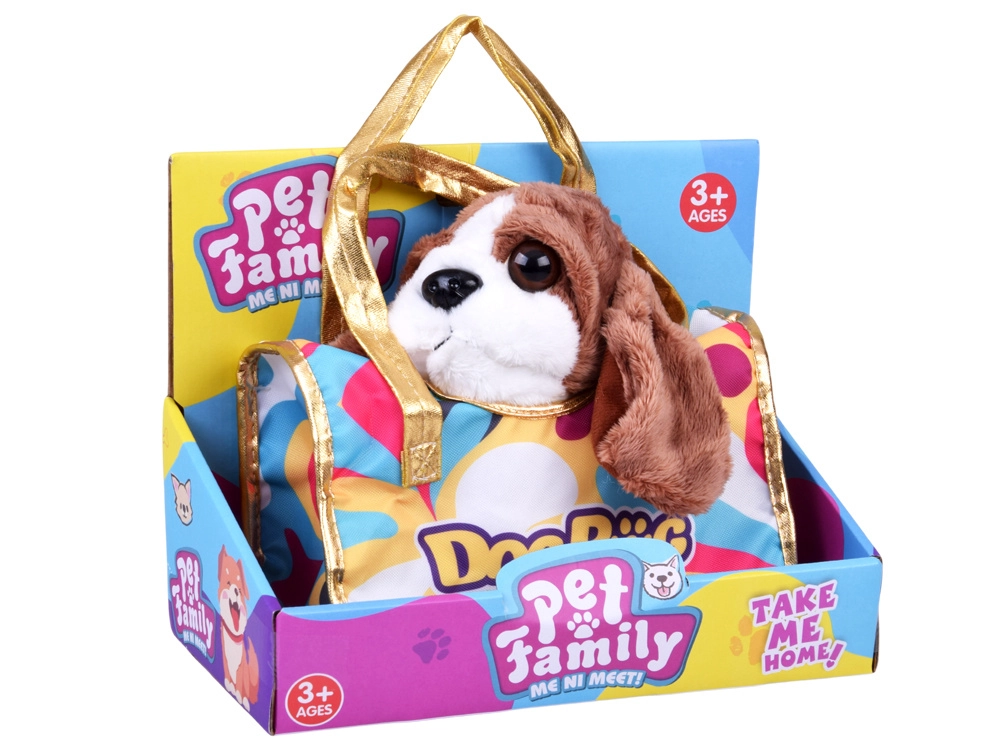 Acest căţeluş de pluș drăgălaș va deveni rapid un companion fidel la culcare, la joacă și în excursii. Detaliile realiste, precum urechi moi, ochi lucioși și năsuc drăgălaș, susțin imaginația copiilor și dezvoltarea empatiei față de animale. Setul include o poșetă portabilă stilată cu model multicolor și mânere aurii, datorită căreia joaca de „plimbat” și îngrijit animăluțul devine și mai distractivă.