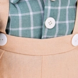 Cămașa verde în carouri, cu detalii, și bretelele cu șort creează un look vintage atemporal, plăcut la vedere și la atingere.