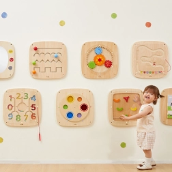 Construcția durabilă, finisarea netedă și fixarea pe perete asigură utilizare în siguranță și economie de spațiu în camera de joacă, grădiniță sau camera copilului. Instrument ideal pentru preșcolari de la 2 ani, care susține curiozitatea naturală și răbdarea.
