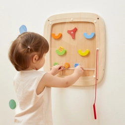 Această tablă de perete din lemn este ideală pentru camerele copiilor, săli de joacă și grădinițe – montajul pe perete economisește spațiu și asigură un joc sigur și stabil. Cu ajutorul stiloului magnetic, copiii controlează direcția de mișcare a biluțelor, depășesc obstacole și vizează zonele cu punctaj, consolidând în mod natural răbdarea, concentrarea și coordonarea.