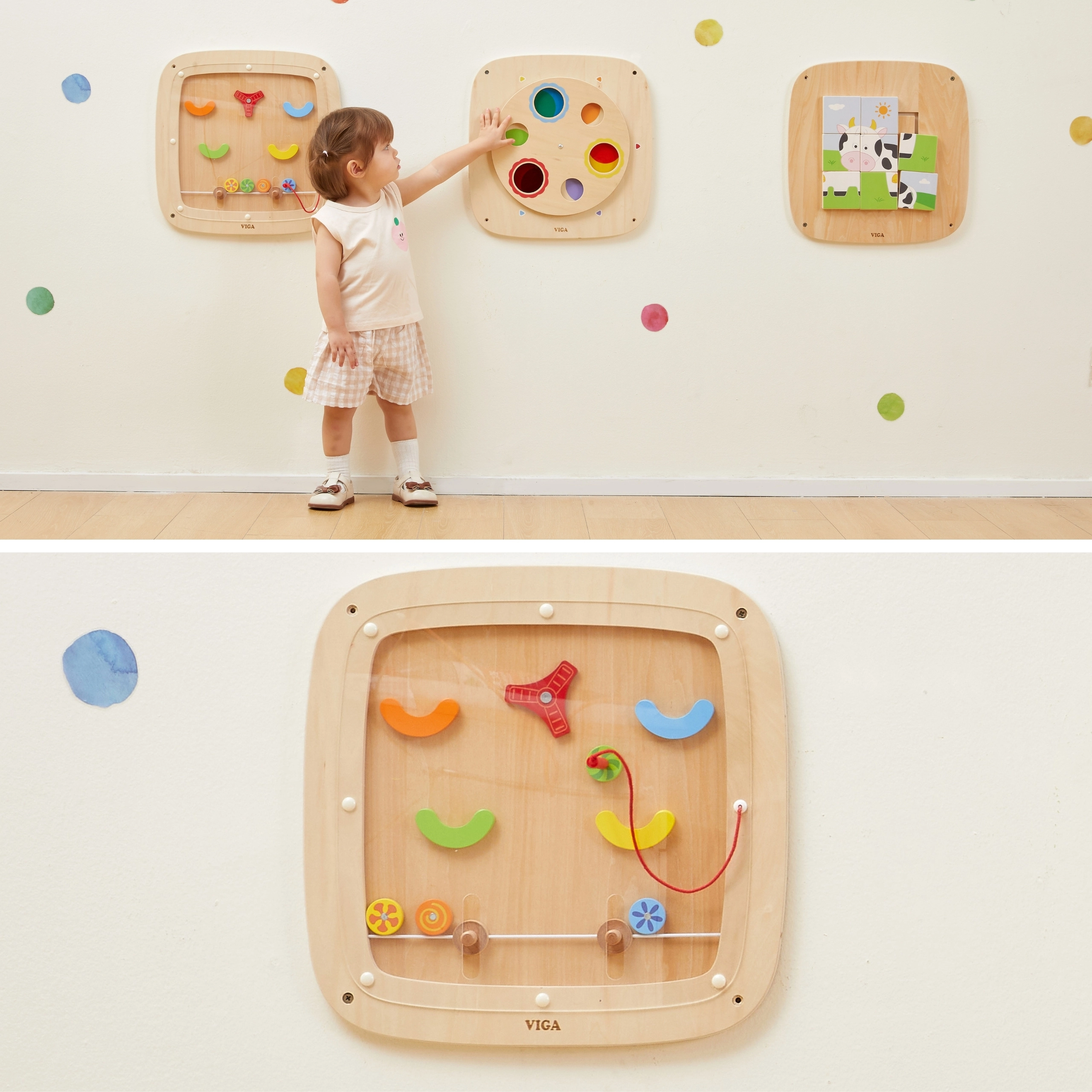 Montarea pe perete eliberează podeaua și asigură un mediu de joc stabil și organizat, potrivit pentru camere, săli de joacă și grădinițe.