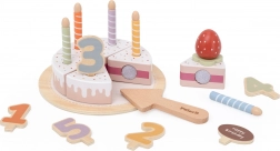 Setul este realizat din lemn de calitate, cu suprafață netedă și vopsele sigure. Nuanțele pastelate invită la joacă, în timp ce cifrele și lumânările dezvoltă natural calculul, coordonarea mână–ochi și motricitatea fină. Grozav ca accesoriu pentru bucătăria de jucărie sau pentru o „petrecere” aniversară a copiilor.
