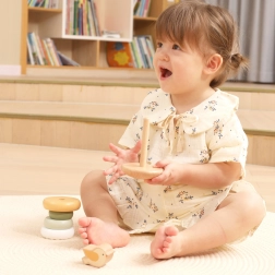 Piesele din lemn, netede și atent șlefuite, împreună cu baza stabilă, permit joaca în siguranță încă de la 12 luni. Culorile pastel atrăgătoare invită la aranjare și descoperire.