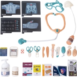 În pachet găsiți 26 de piese, inclusiv stetoscop, termometru cu setarea temperaturii, seringă, bisturiu, pensetă, foarfece, ciocănel neurologic, oglindă și alte accesorii. Compartimentele practice și ușile oferă depozitare organizată pentru toate instrumentele, astfel încât totul să fie mereu la îndemână. Materialele durabile și sigure sunt adaptate copiilor de la 3 ani.