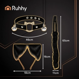 Exprima‑ți fantezia cu setul RUHHY din 3 piese, care combină stil, distracție și confort. Blănița artificială moale în elegantul negru arată spectaculos în poze și clipuri și este plăcută la atingere. Coada modelabilă cu sârmă elastică se ajustează ușor în orice formă, iar chokerul cu două clopoțele adaugă un accent jucăuș. Bentița cu urechi rămâne fixă pe cap datorită prinderilor practice.