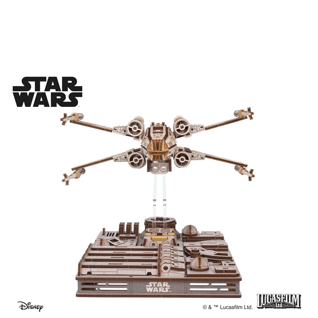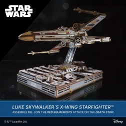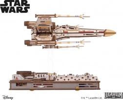 Modelul încântă prin elemente funcționale: cockpit deschizabil, tren de aterizare detașabil, trapă pe fuselaj cu buton în stil R2-D2 și, mai ales, aripi S-foil care comută în poziție de atac. Alimentarea suportului se face cu 3× AA baterii sau prin cablu USB-C (nu este inclus). Asamblarea are loc fără adeziv și unelte.