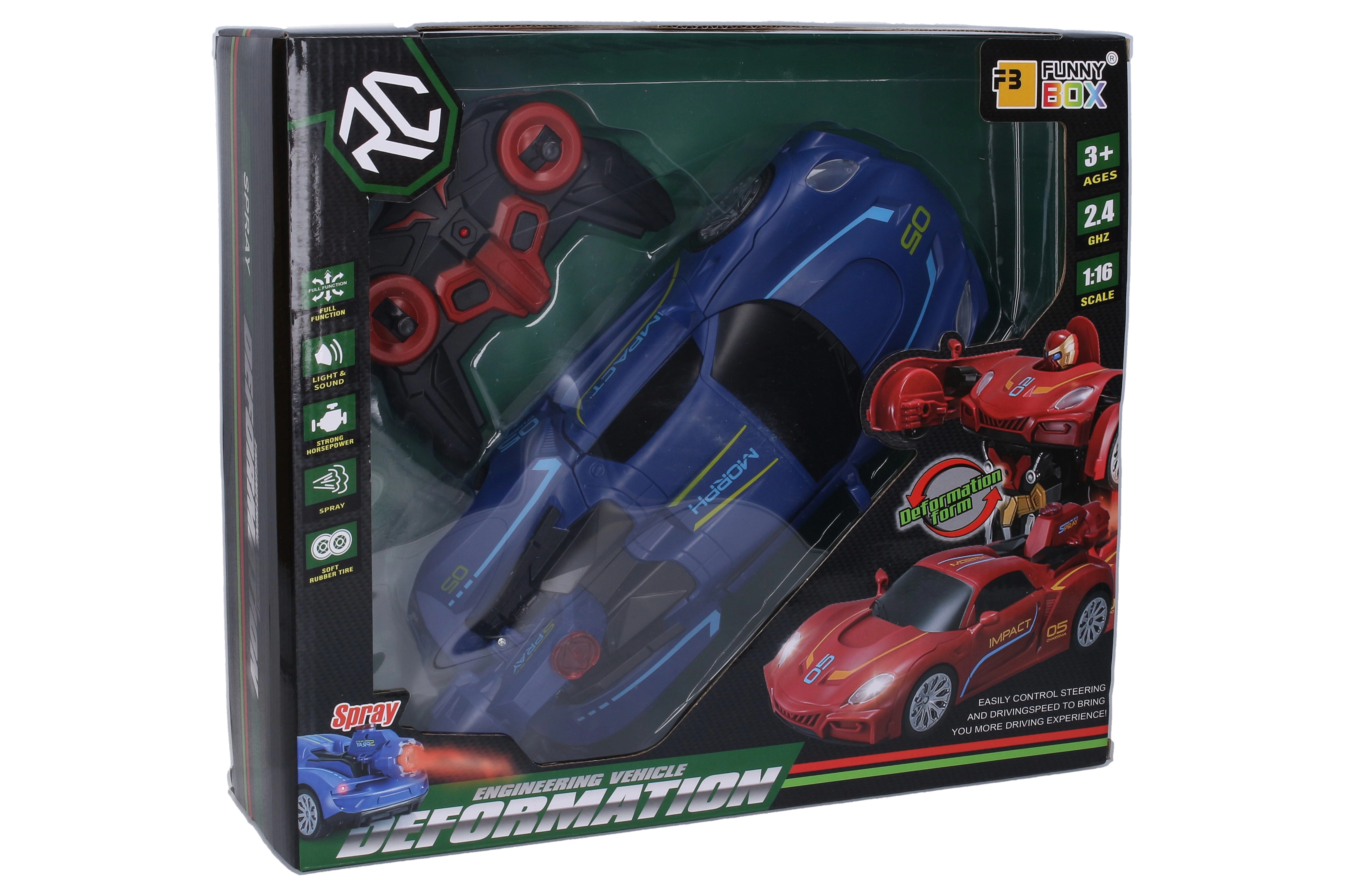 Acest autorobot RC cu efect de fum combină o mașină rapidă și un robot de acțiune într-un singur produs. Printr-o apăsare de buton activați transformarea, iar datorită efectului de fum și efectelor luminoase și sonore puternice, oferă un spectacol impresonant care îi va încânta atât pe copii, cât și pe adulți.