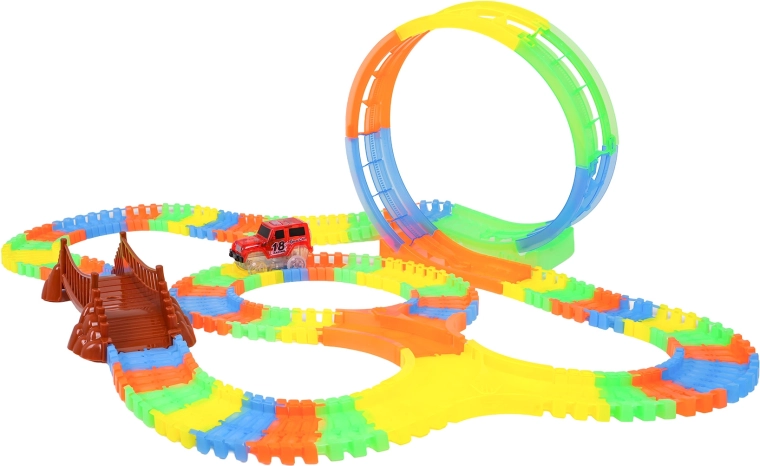 Segmentele flexibile se clipsază ușor, se îndoaie, se ridică și se reconfigurează – creați poduri, curbe și bucla verticală exact cum vă dictează imaginația.