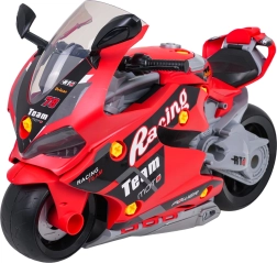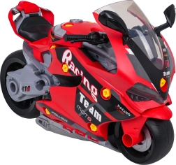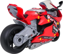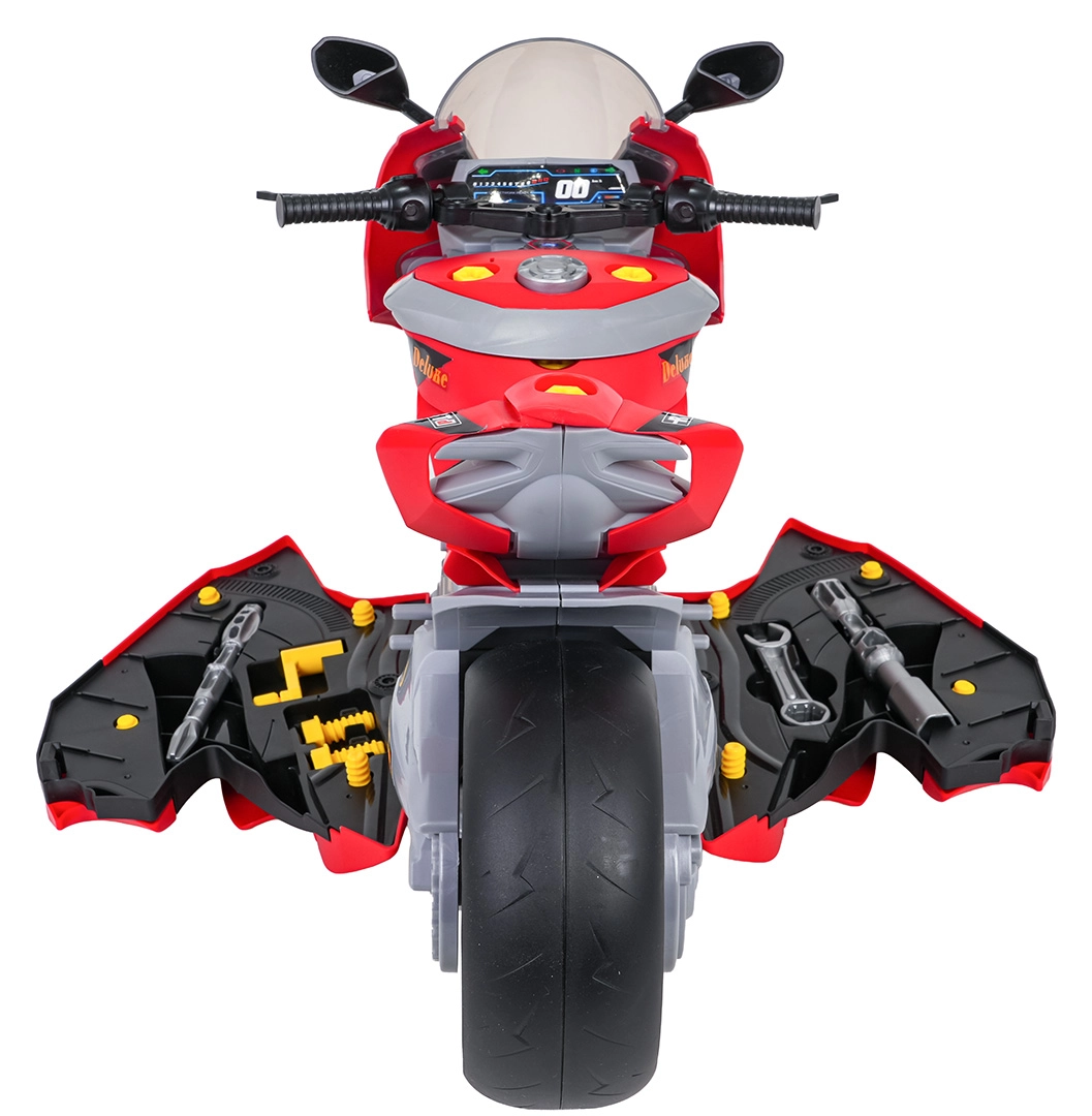 Motocicleta este realizată din materiale de calitate, rezistente, are mâner confortabil pentru transport, roți mari și mobile și detalii realiste ale caroseriei. Efectele includ faruri față, stopuri spate, sunete de motor și un efect unic de fum din eșapament după completarea cu apă. Ideală ca cadou pentru copiii curioși.