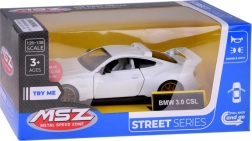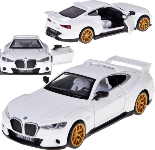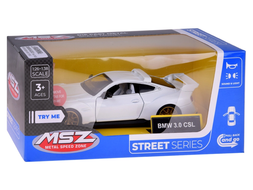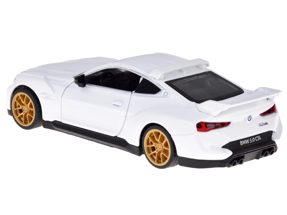Modelul compact, dar realizat cu precizie BMW 3.0 CSL îi va încânta pe copii și pe fanii esteticii auto clasice. Caroseria metalică, liniile sportive și elementele tipice BMW subliniază aspectul autentic. La deschiderea ușilor se activează luminile față și spate și se aud sunete realiste ale motorului și mersului, făcând joaca și mai captivantă.
