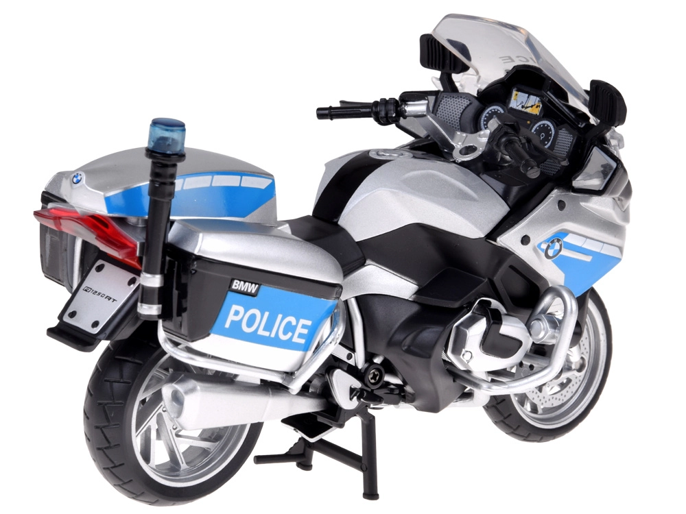 Acest model de motocicletă de poliție BMW R1250 RT-P la scară 1:12 este realizat cu detalii fidele, proporții corecte, detalii realiste ale cockpitului și elemente autentice de poliție. Părțile metalice asigură durabilitate, iar accesoriile din plastic completează aspectul cu precizie.