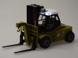 Acest stivuitor pentru copii combină un aspect atractiv, profesional, cu funcții bine gândite, care aduc mai aproape lumea echipamentelor reale de depozit. Cu două butoane pe acoperiș porniți 4 sunete realiste (pornirea motorului, mersul înapoi, ridicarea încărcăturii, claxonul), însoțite de lumină albă intermitentă pentru o autenticitate și mai mare a jocului.