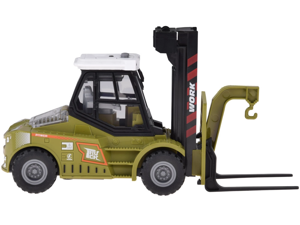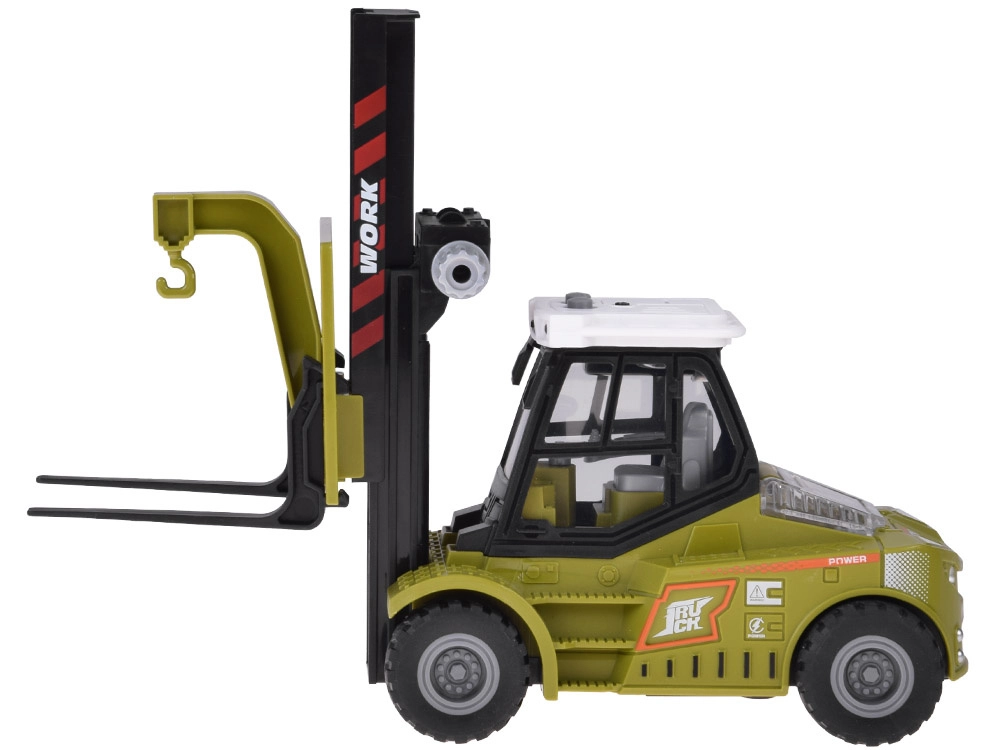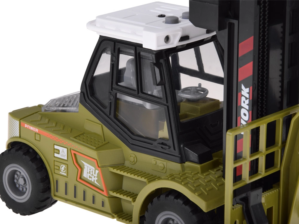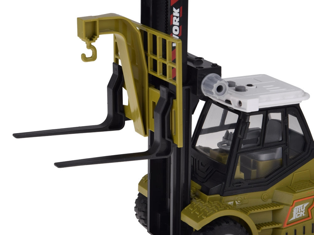 Furcile pot fi lărgite și îngustate manual în funcție de tipul „încărcăturii”, iar ridicarea se face prin o rotiță comodă. Veți aprecia și „portbagajul” transparent deschizibil pentru mărunțișuri și rotițele din cauciuc, care rulează lin și nu zgârie podeaua. Construcția durabilă și cabina detaliată susțin un joc creativ, sigur și de lungă durată.