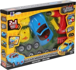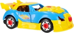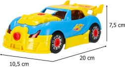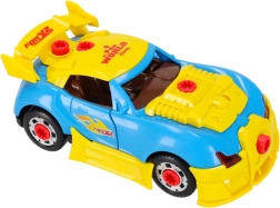 Setul pentru construit o mașină sport colorată oferă copiilor distracție pentru ore întregi. Datorită șurubelniței pe baterii incluse, mâinile mici pot demonta și reasambla mașina, schimba panourile caroseriei și roțile și descoperi cum funcționează lucrurile. După asamblare, mașina impresionează prin lumini și sunete de motor, care amplifică realismul jocului.