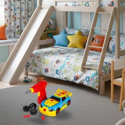 Șurubelnița electrică pentru copii și șuruburile mari din plastic permit montaj și demontaj repetat. Ideal pentru dezvoltarea motricității fine și a răbdării.