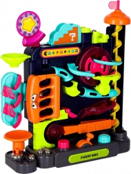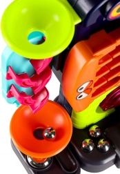 Pârghiile, butoanele și mecanismele de rotație le permit copiilor să dirijeze activ traseul bilelor, să își dezvolte motricitatea fină și precizia mișcărilor.