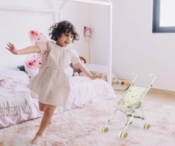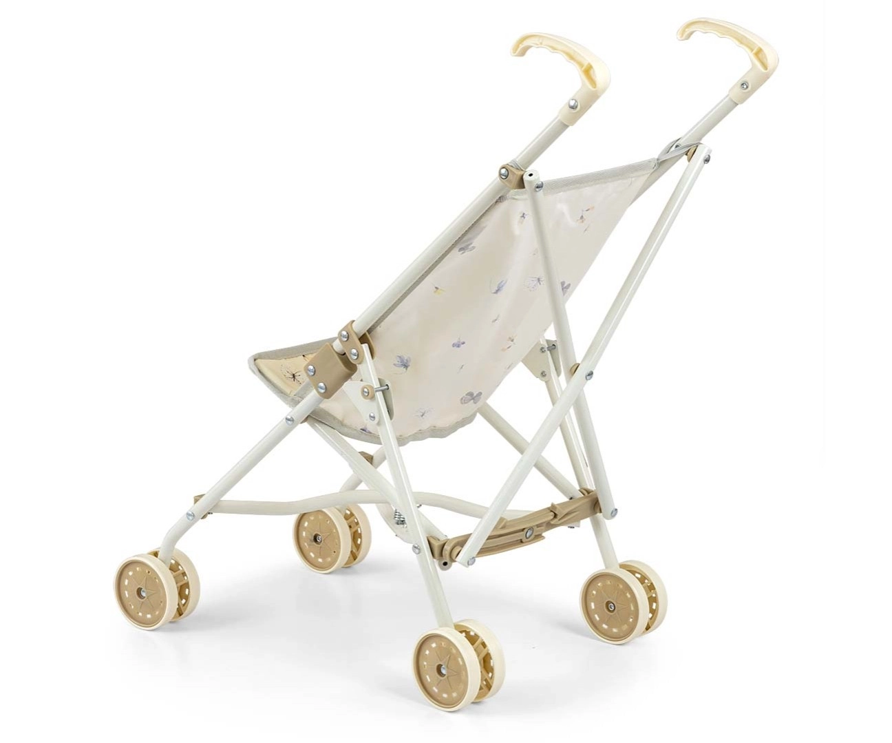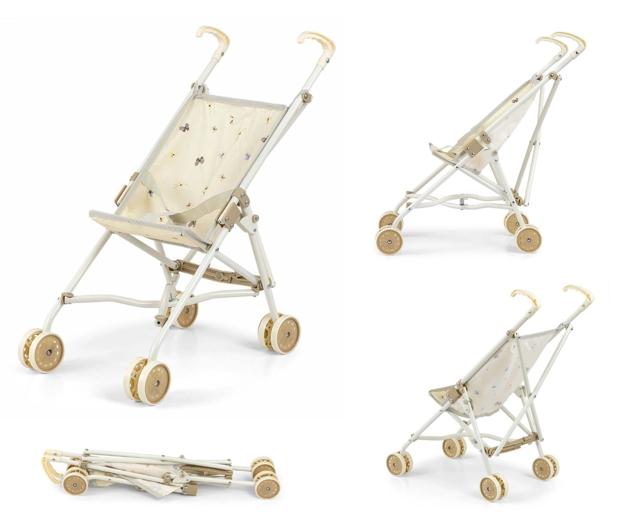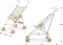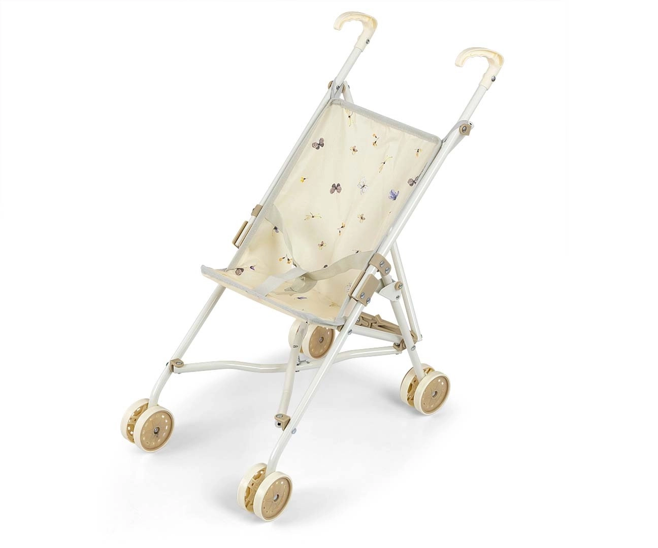 Datorită plierii rapide tip umbrelă, căruciorul se depozitează ușor, plat, astfel încât nu ocupă loc acasă sau în călătorii. Șasiul metalic oferă robustețe, roțile duble asigură rulare lină, iar centura de siguranță fixează păpușa în siguranță.