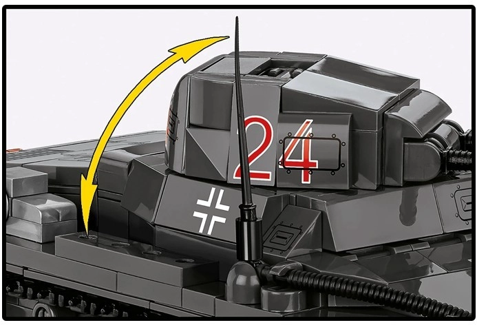 Turelă rotativă la 360°, armament ajustabil și șenile realiste cu roți permit scene dinamice, mișcare fluidă și o prezentare atrăgătoare a modelului.