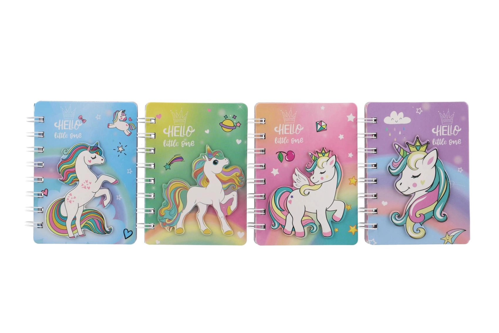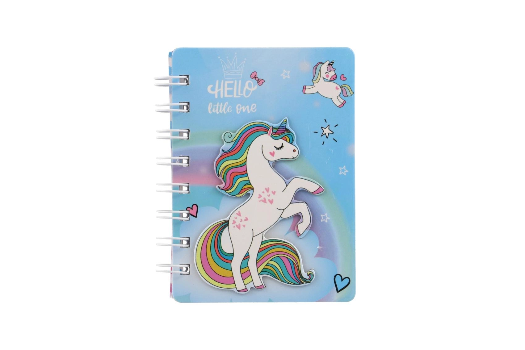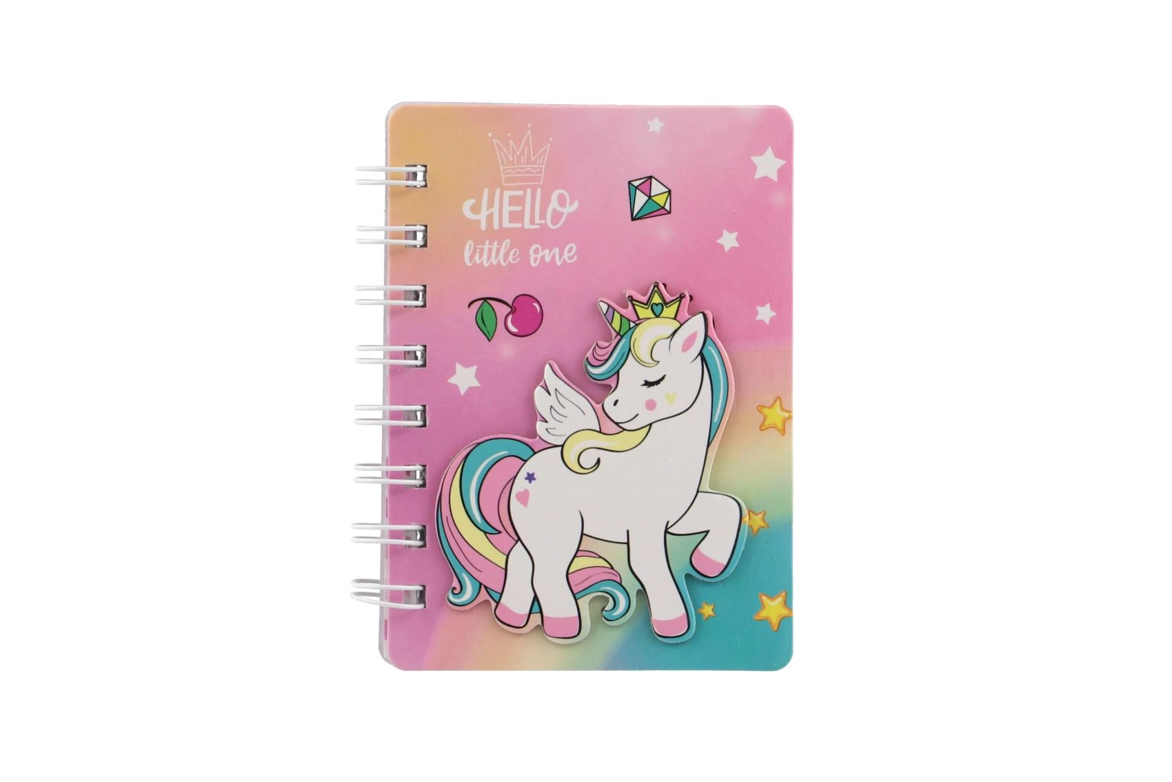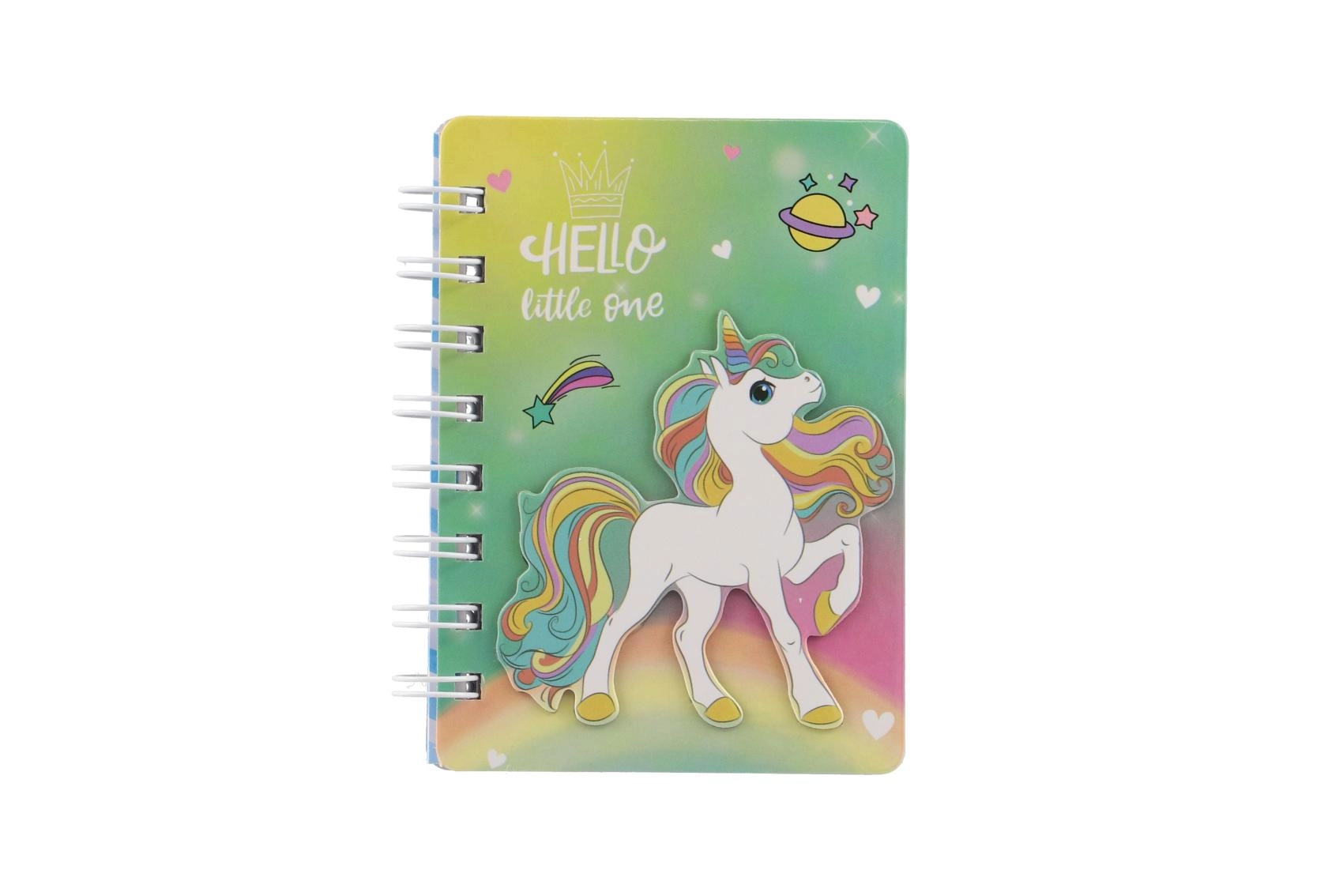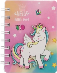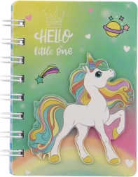 Descoperă caietul fermecător cu motiv unicorn, care atrage prin aspectul jucăuș în culorile curcubeului și legătura practică cu spirală. Este grozav pentru a scrie notițe, a desena și a fixa idei oricând și oriunde. Dimensiunea compactă de 9,5 × 12 cm asigură că îl vei avea mereu la îndemână.