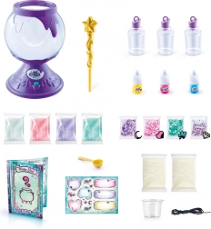Descoperă lumea magiei cu setul So Slime Cazan Magic. Copiii își pot crea ușor și în siguranță propriile elixire de slime cu impresionante efecte luminoase și de ceață, transformând întregul ritual de amestecare într-o experiență magică. Datorită rețetelor incluse, vei obține amestecuri care își schimbă culoarea, luminează în întuneric sau bolborosesc.