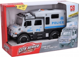 Mașina blindată de poliție realistă cu mecanism pe inerție îi va încânta pe micii iubitori de acțiune. Oferă efecte luminoase și sonore, activare ușoară prin butoanele de pe acoperiș și o dimensiune compactă de 24 cm pentru joacă comodă acasă și în aer liber.