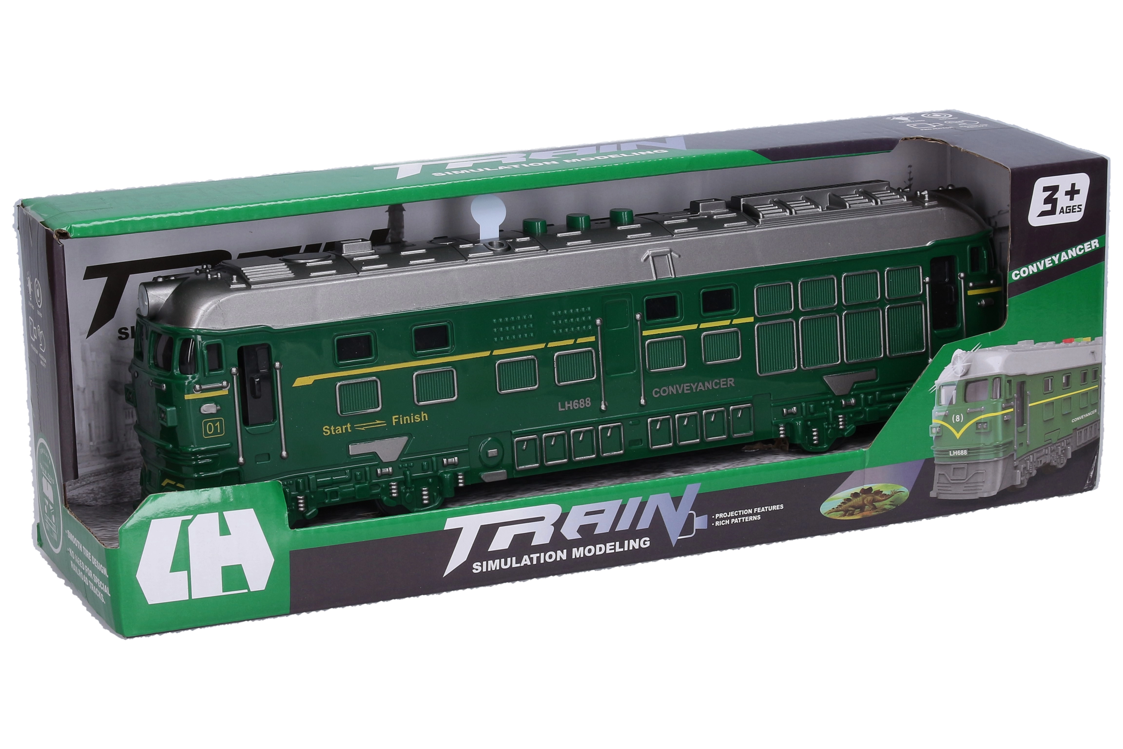 Trenul verde cu inerție îi va încânta pe micii iubitori ai căilor ferate. Oferă efecte luminoase și sonore, o proiecție impresionantă și control facil prin butoanele de pe acoperiș. În pachet sunt incluse baterii 3× AG13, astfel încât copiii se pot juca imediat.
